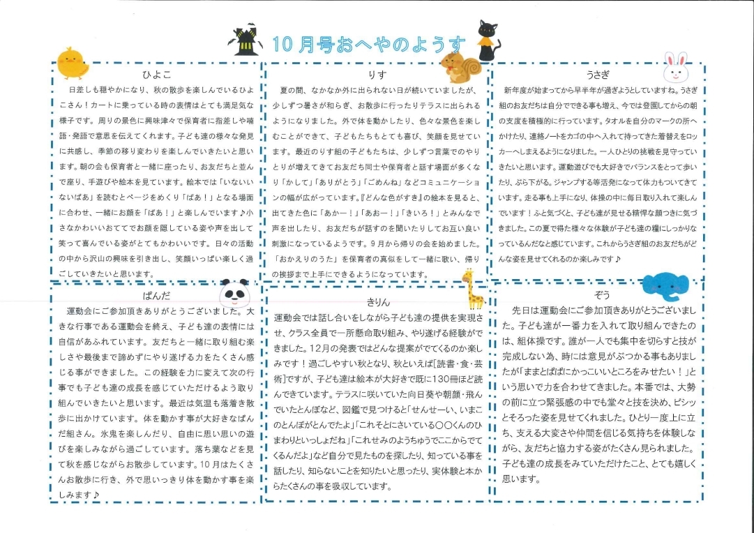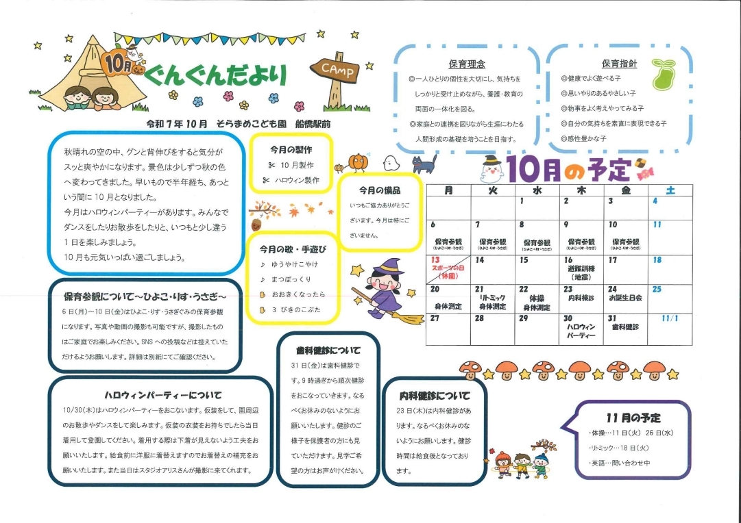 その月ごとのイベントやおたよりを掲載しております。