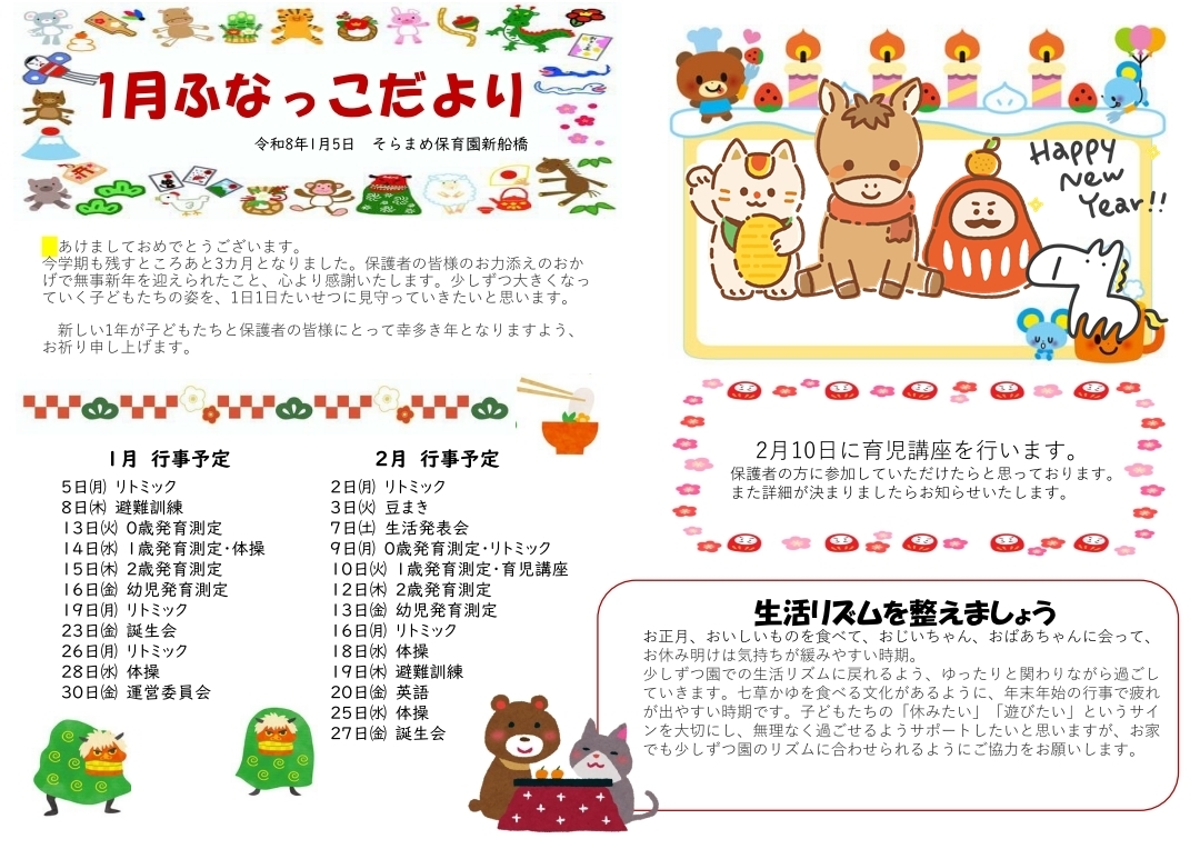 その月ごとのイベントやおたよりを掲載しております。