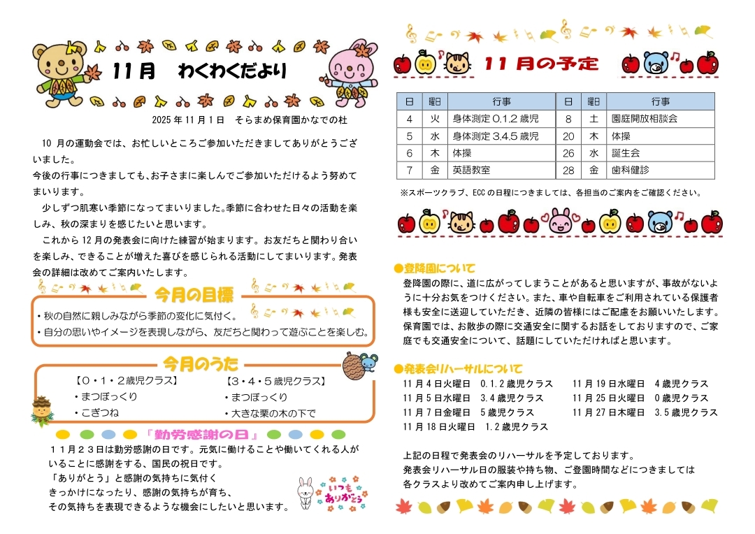 お子様の年齢や登園状況など人数を配慮してそれぞれ取り決めておりますので