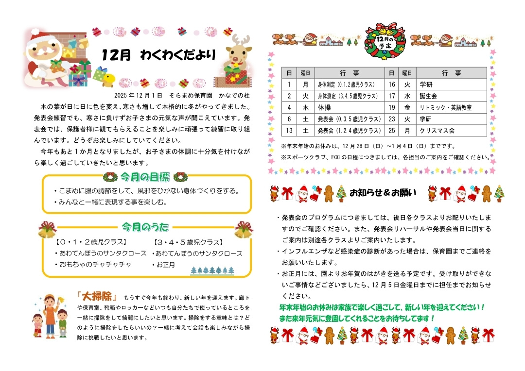 その月ごとのイベントやおたよりを掲載しております。