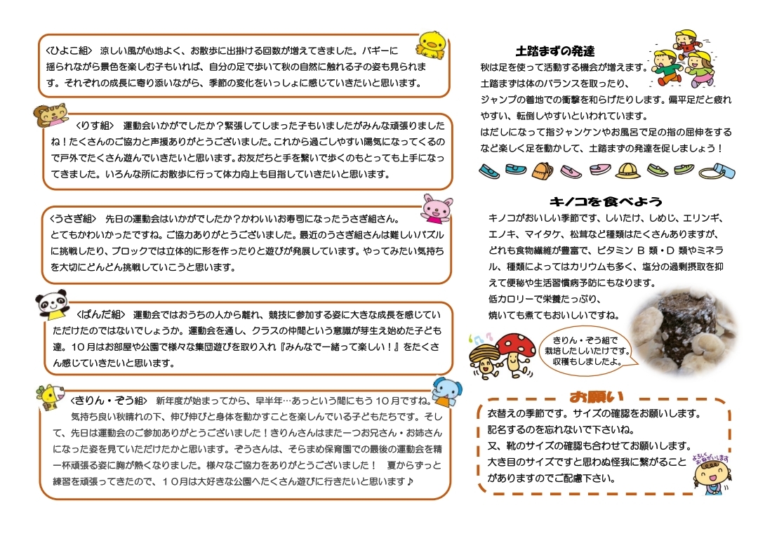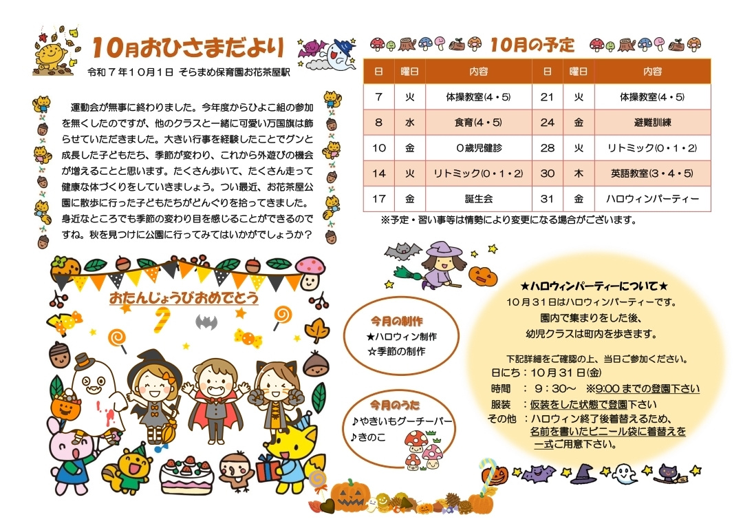 その月ごとのイベントやおたよりを掲載しております。