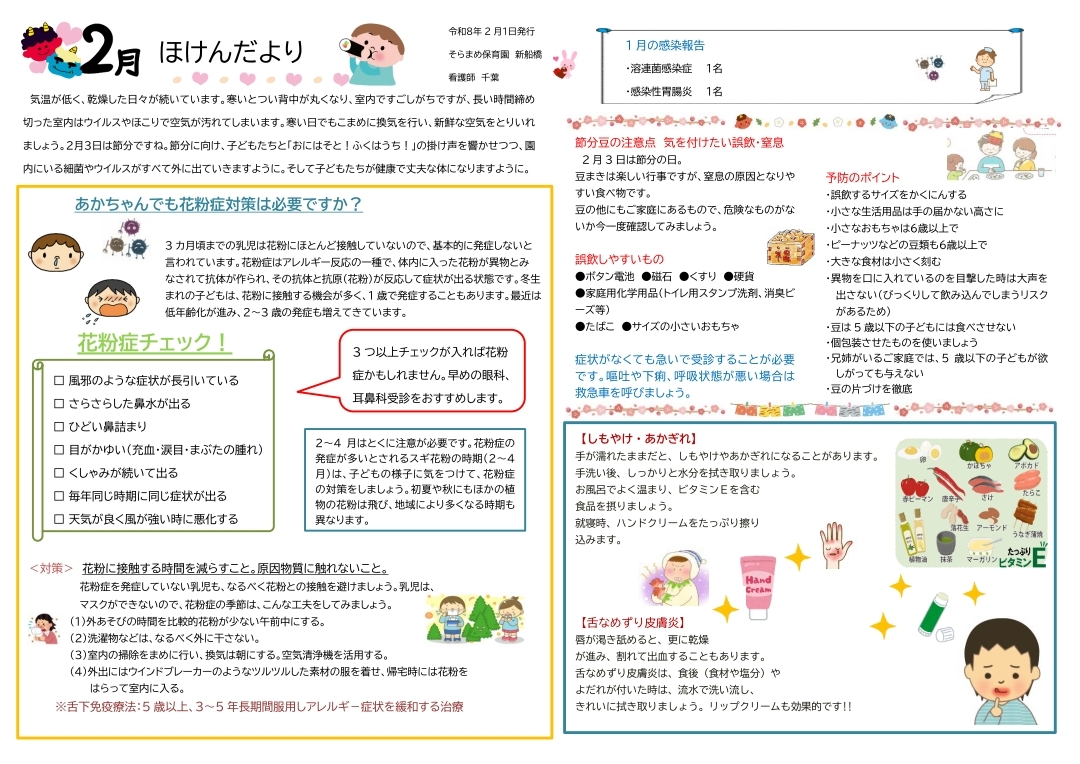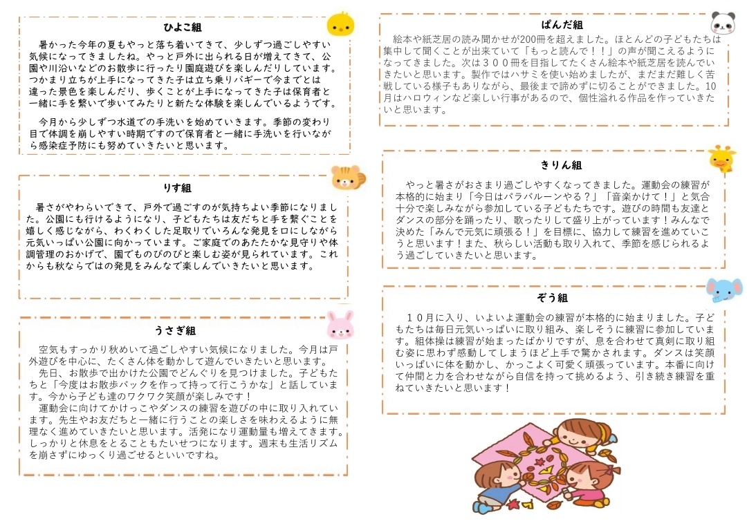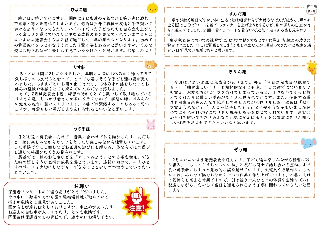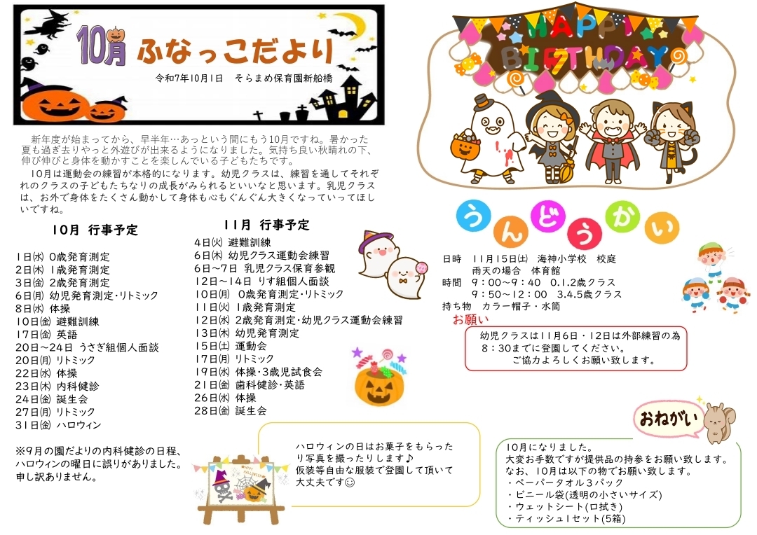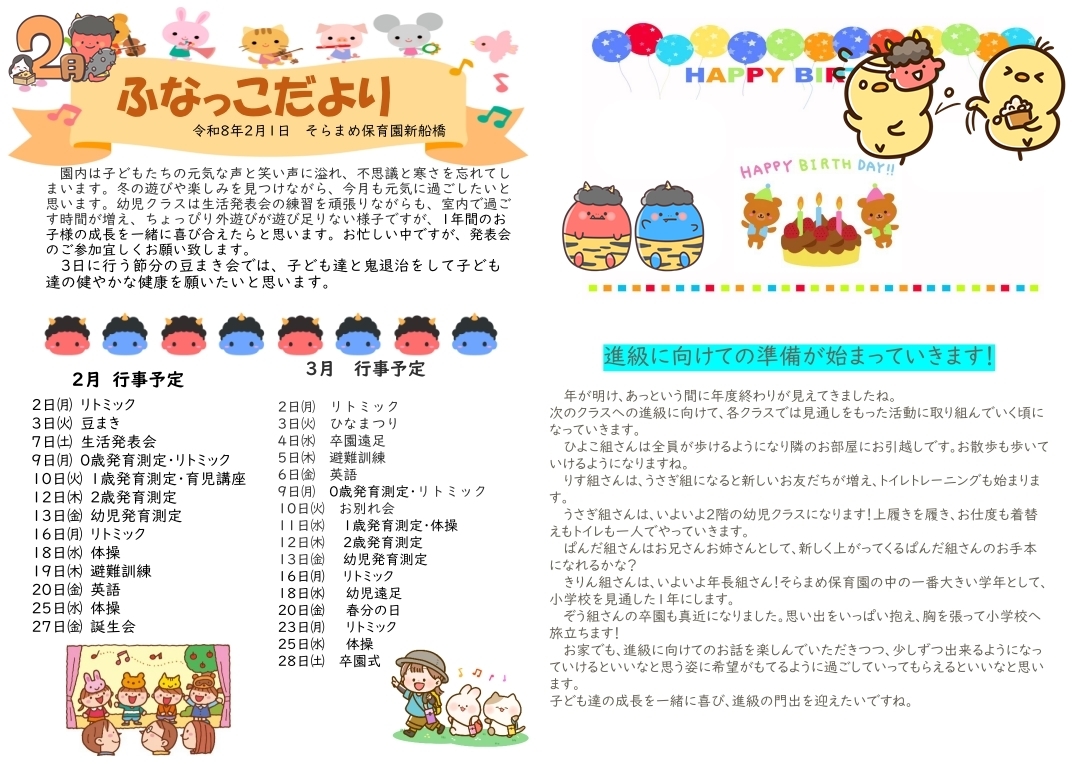 その月ごとのイベントやおたよりを掲載しております。