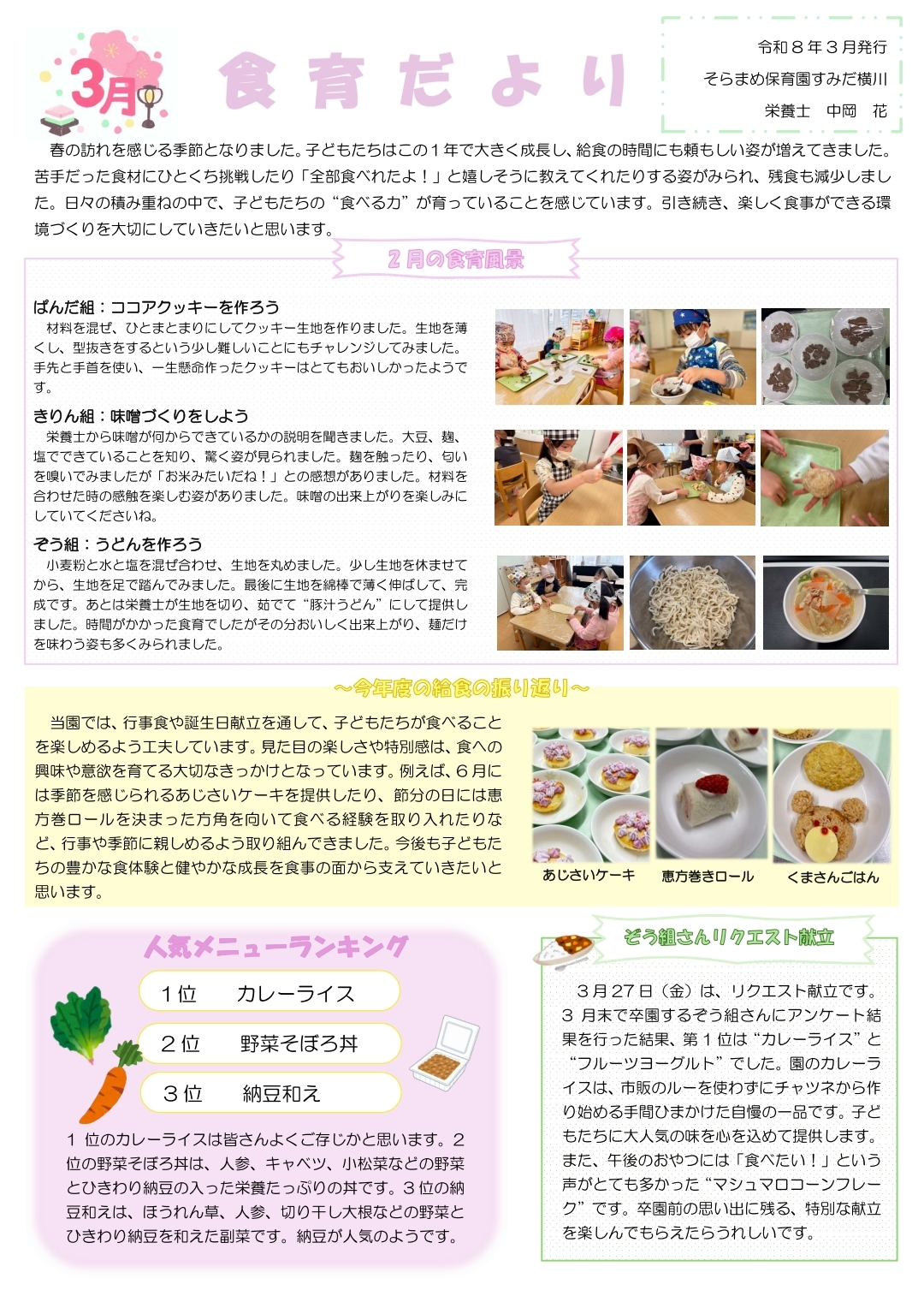 今月の献立 乳児 幼児