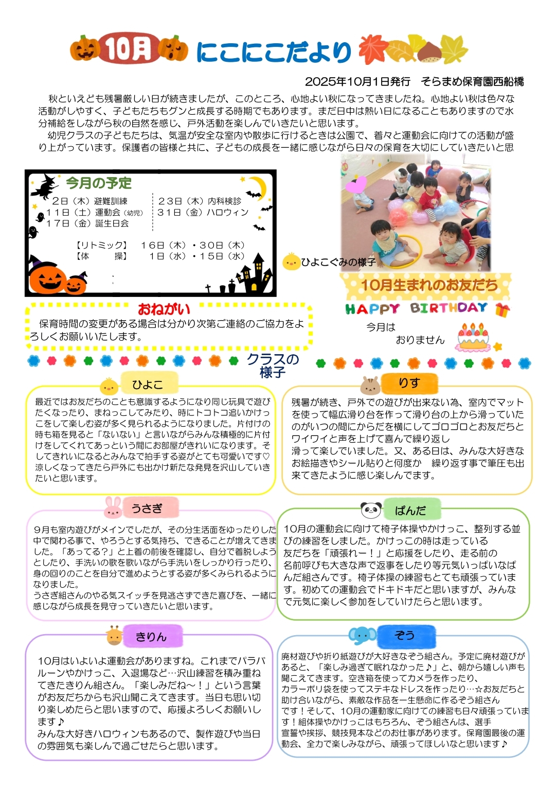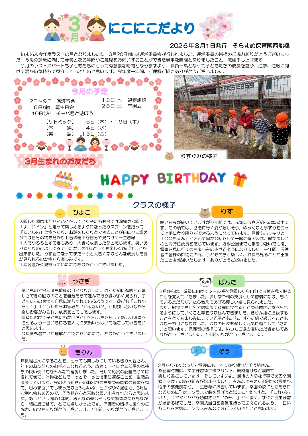 その月ごとのイベントやおたよりを掲載しております。
