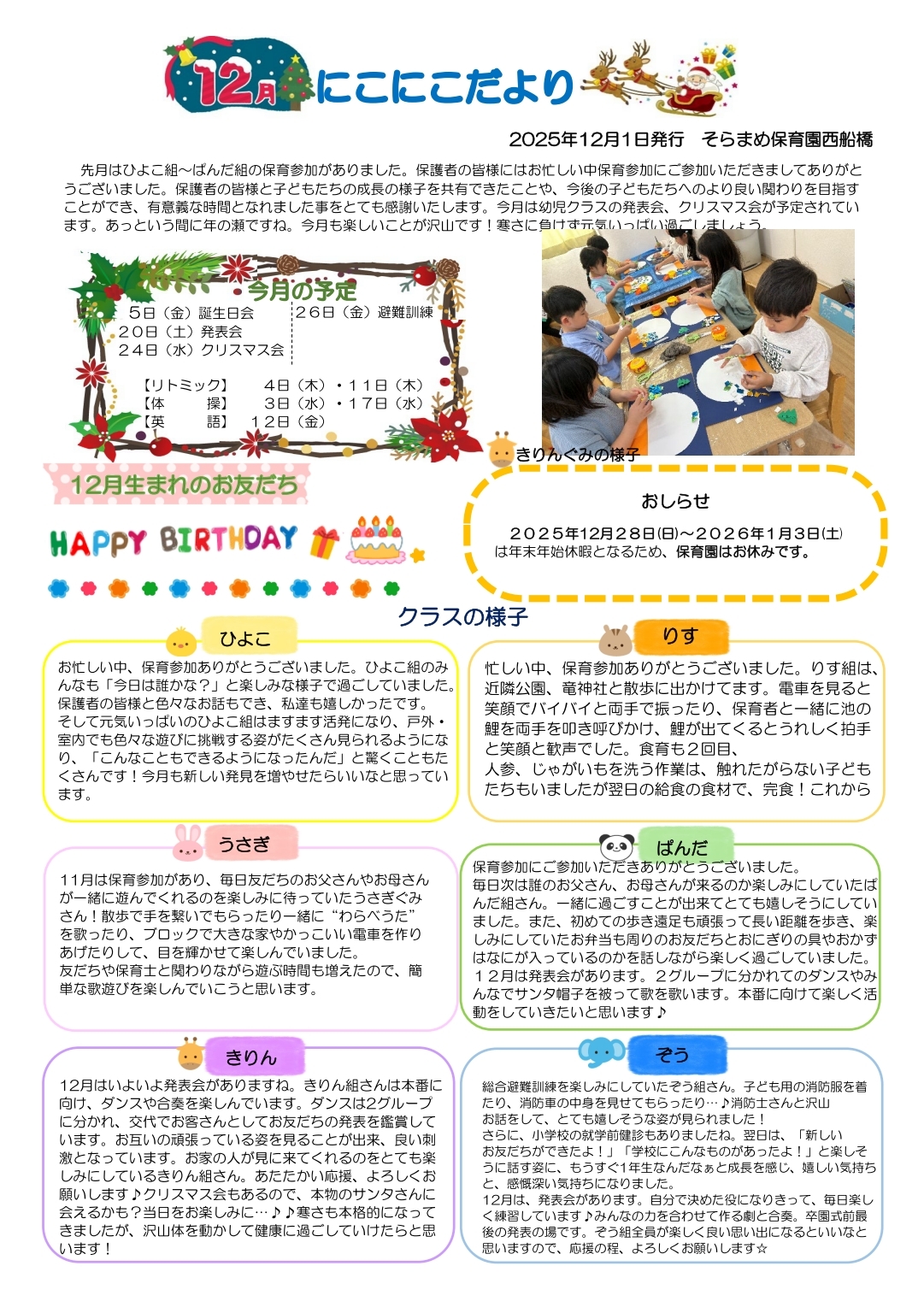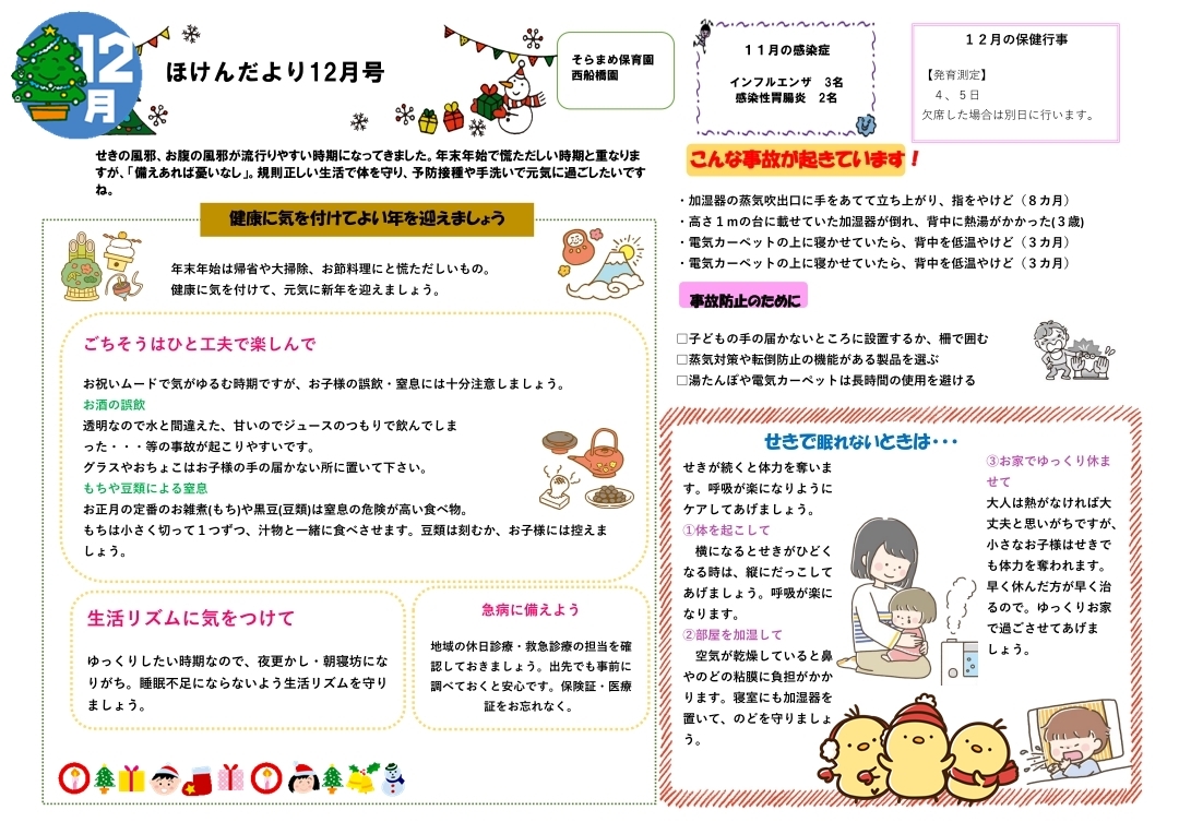 お子様の年齢や登園状況など人数を配慮してそれぞれ取り決めておりますので